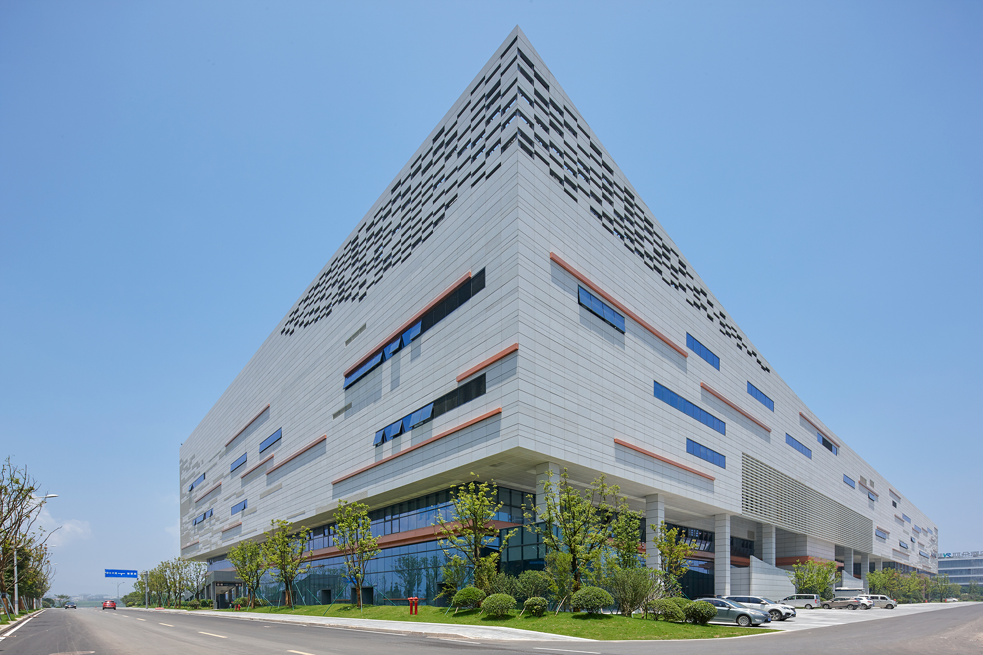 本项目为装配式建筑,主体结构为全钢结构(钢柱、钢支撑、钢梁、钢桁架、楼盖为压型钢板组合楼盖均为免支撑体系),非承重围护墙及隔墙材料均采用纤维增强硅酸盐板,遵循建筑与装修一体化设计及施工原则,经参数核算项目装配率达到了66%,为建筑全寿命周期实现,采用BIM技术,解决了项目时间紧、任务重的高要求设计及建设标准,为数字峰会的顺利召开及后期运营提供了有利条件