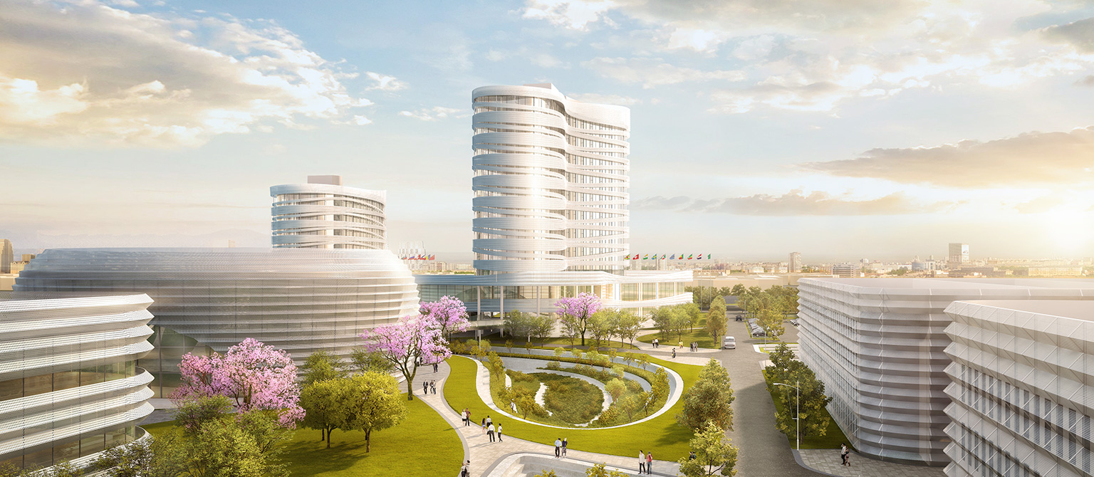 援非盟非洲疾病预防控制中心总部(一期)项目位于埃塞俄比亚首都亚的斯亚贝巴市西南方向的“非洲村”,距非盟总部约10公里,距机场10公里,距离市中心约30分钟车程。建设用地位于亚的斯亚贝巴市西环路和南环路之间,整个用地约为长方形,总用地面积约为9公顷,一期项目建设用地约5.35公顷。