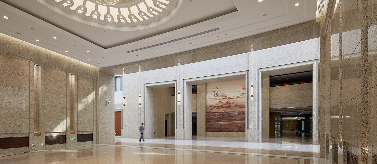 此次改扩建是在原有主体办公楼不拆除的情况下进行改扩建,原主体办公楼北侧和南侧分别新扩建北办公楼和南侧礼仪大厅。另因原办公楼是1993年竣工,1994年使用,根据现结构规范标准土建结构需检测、加固改造,原机电设备需升级换代。