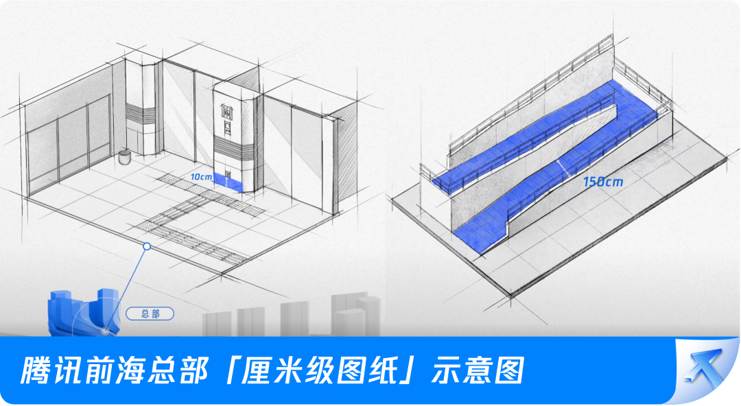 正在规划的腾讯深圳前海新总部,对外公开了建设「图纸」......中的几厘米。分别是 150cm、150cm、45cm、10cm、1.3cm。这个厘米级项目,它们代表了前海总部建设里的无障碍“小心思”,为的是让每一位访客都能在园区各处畅行无阻,享受全龄友好的无障碍服务体验。
