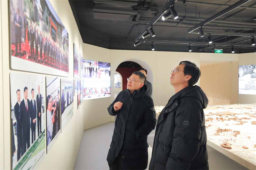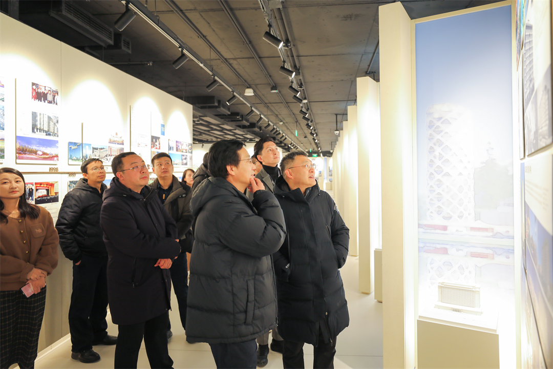 北京建院党委书记、董事长徐全胜陪同刘新锋主任一行共同参观了北京建院礼士书房和院史馆,体验北京建院书香文化,了解北京建院悠久的历史,以及在建筑规划设计、城市更新领域和建筑科技等方面的历程与成就。