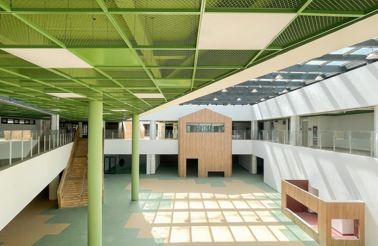 中央游戏大厅支持快速切换教学、游戏活动场景,各开放教学空间可以根据教学需求完成功能转换,满足幼儿园的教学理念;屋顶露台方便孩子们户外活动,落地玻璃窗实现室内外视觉连通,便于老师监护与自然教育渗透。丰富的建筑空间满足孩子们在这里探索、学习和生活。
