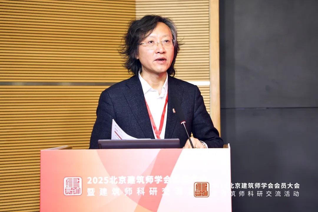 学会副理事长、全国工程勘察设计大师、清华大学建筑学院院长张利在视频致辞中转达了国际建筑师协会(UIA)主席Regina Gonthier对北京建筑师的问候,指出2025北京建筑师学会会员大会暨建筑师科研交流活动是迈向2029年世界建筑师大会的重要思想集结,他强调国际建协坚守沟通与融合的使命,期待中国新型城镇化智慧为全球建筑界提供支撑。张利大师作为国际建协副主席与北京建筑师一员,他致敬同仁们在技术变革与可持续挑战中的责任担当与广阔视野,称赞北京建筑师群体的格局与自豪感,并预祝大会圆满成功。