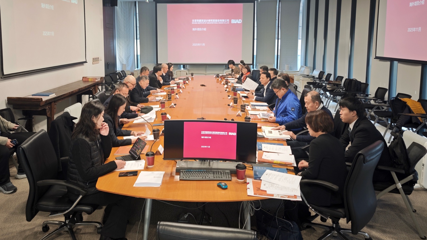 2025 年 11 月 20 日上午,中国公路工程咨询集团有限公司总经理赵晓峰率核心团队到访北京市建筑设计研究院股份有限公司,围绕国际工程项目实践深化、前沿技术创新应用及未来合作新机遇展开深度研讨。本次高层交流活动特邀日本大林组、新加坡国立大学专家代表共同参与,北京建院党委书记、董事长徐全胜,总建筑师王晓群,结构总工程师束伟农,第四建筑设计院院长王亦知,建筑与环艺设计院副院长李文华,结构副总工程师薛红京等领导及核心骨干出席交流。