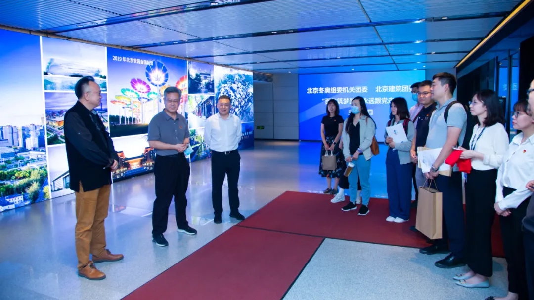 为庆祝中国共产党成立100周年,深入学习贯彻习近平总书记“七一”重要讲话精神,近日,北京建院团委与北京冬奥组委机关团委联合开展了“百年筑梦路,永远跟党走”主题团日活动。北京冬奥组委规划建设部部长、党支部书记、首都规划建设委员会办公室专职副主任刘玉民,北京建院党委书记、董事长徐全胜,党委副书记、总经理张宇出席活动。北京冬奥组委机关团委、北京建院团委、营销管理中心、人力资源部等组织、部门负责人,以及双方团员青年代表共20余人参加活动。